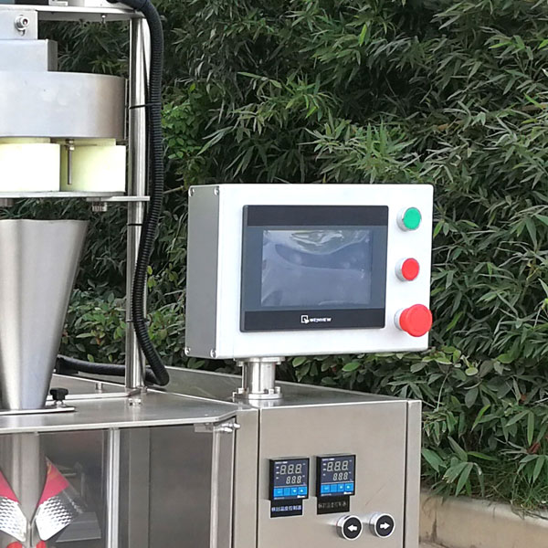 5、袋裝沖劑包裝設備采用觸摸屏和穩定可靠的PLC控制,操作直觀簡單,制袋、計量、充填、封合、打碼、切袋一次性完成,運行非常穩定;